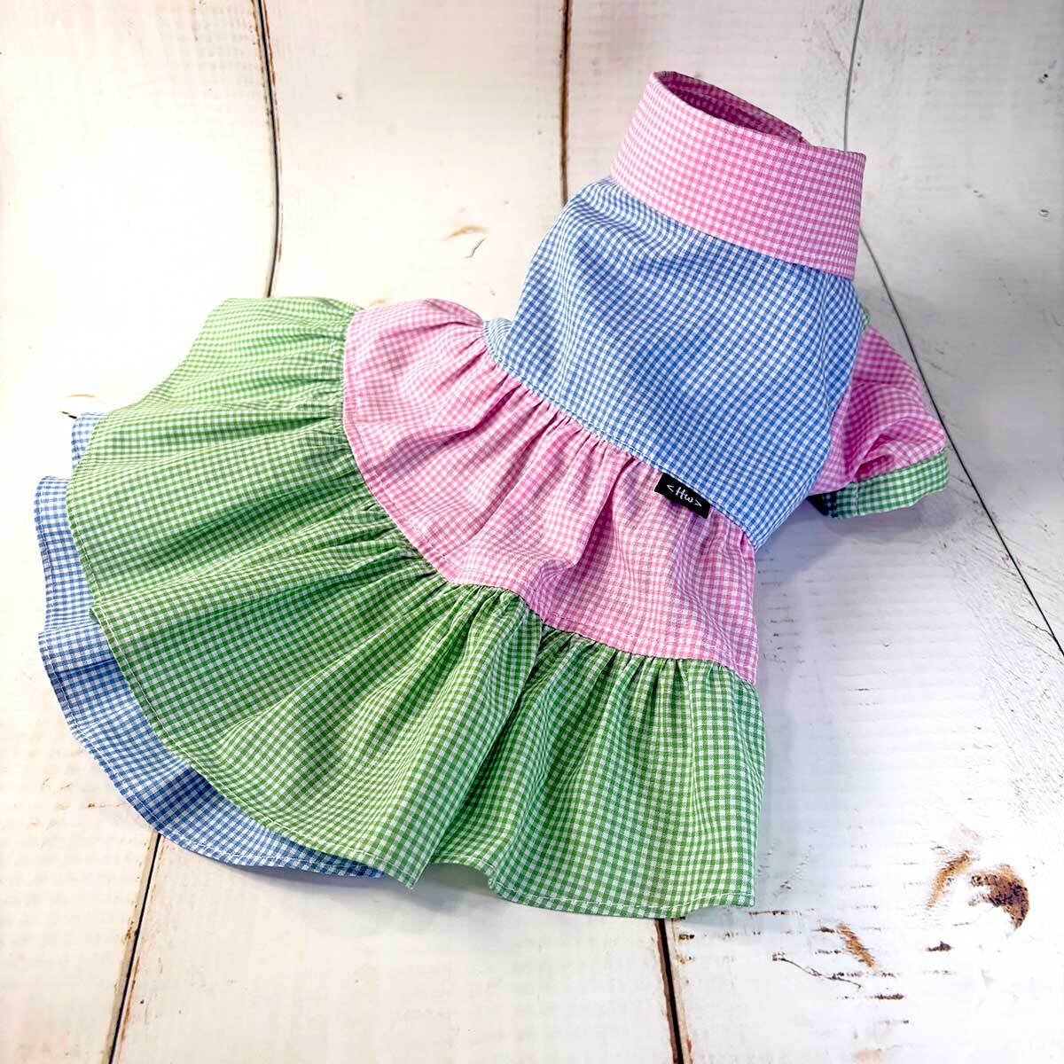 柔らかくしなやかなブロードのギンガムチェックを3色重ねて作った、