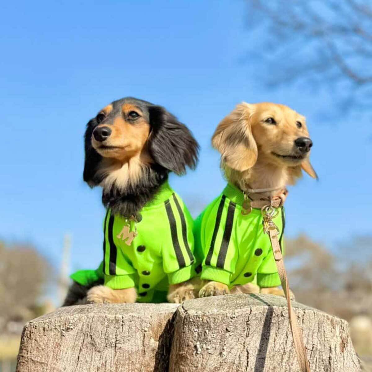 HERE COMES THE WOOF! らしいスポーティなネオンカラーのジャージセットアップ。