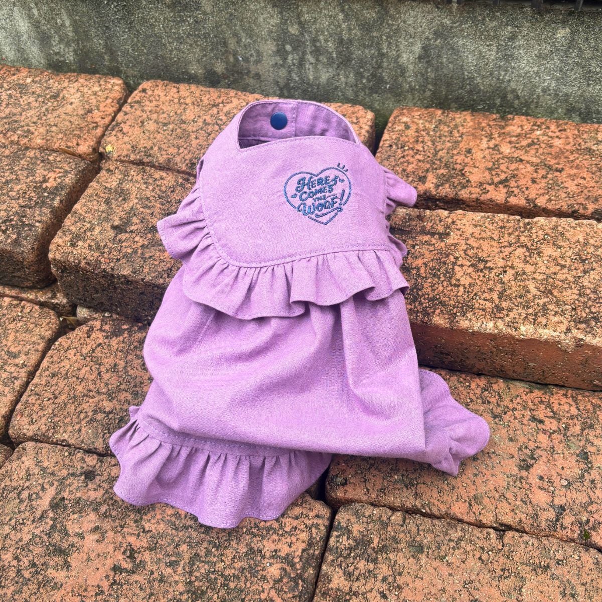 HERE COMES THE WOOF! ロゴ刺繍。