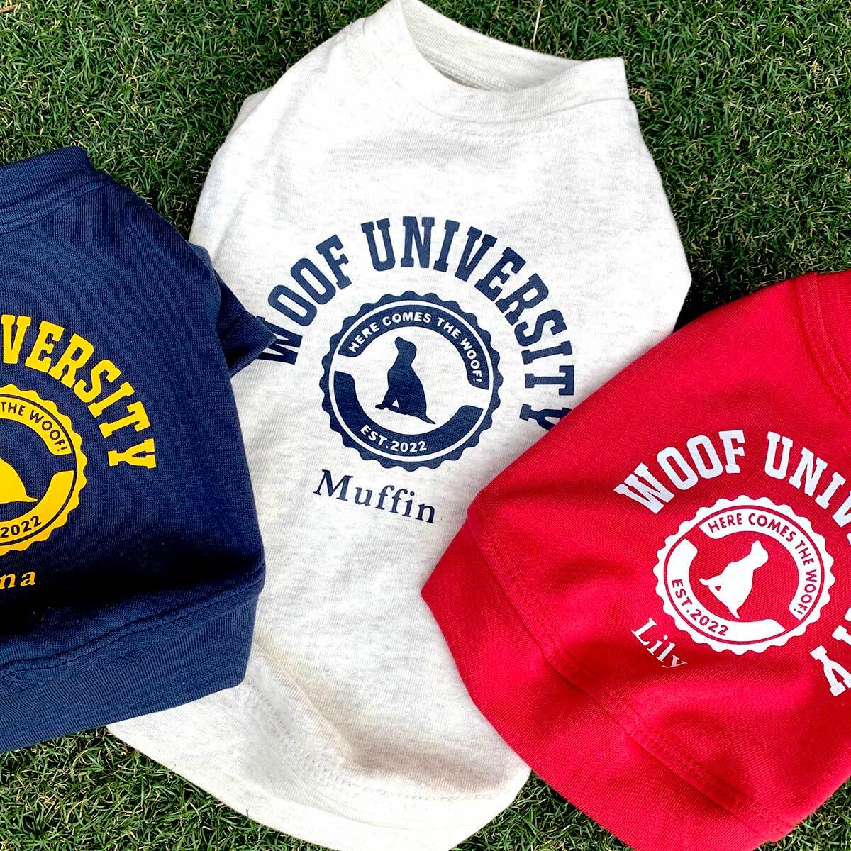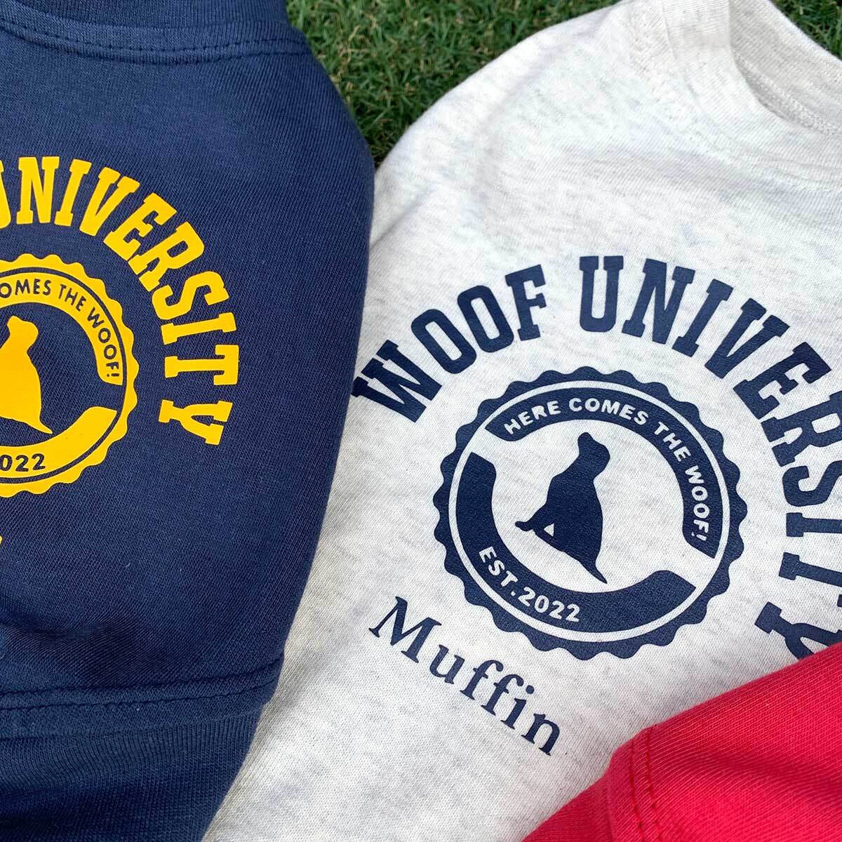 「WOOF UNIVERSITY」の文字と犬のシルエットのエンブレム